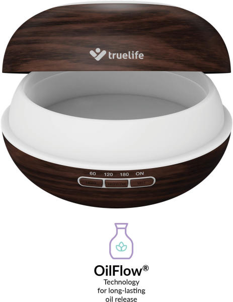 A Truelife illatosító diffúzor egyetlen gombnyomással a kedvenc illatával árasztja el a helyiséget. Kellemes légkört teremt pihenéshez, jógához vagy akár meditáláshoz. Elég mindössze néhány cseppet önteni a kedvenc illóolajból a víztartályba, és az OilFlow® technológia már gondoskodik a többiről. Az illatosító diffúzor kiküszöböli a környezeti szagokat és a felhasználó által preferált illattal tölti meg a helyiség levegőjét. Párásítóként is használhatja. Ultrahang elvén működik, a tartályban lévő vizet finom gőzzé alakítja, amely a helyiség levegőjével elkeveredve szinte azonnal biztosítja a levegő optimális páratartalmát.